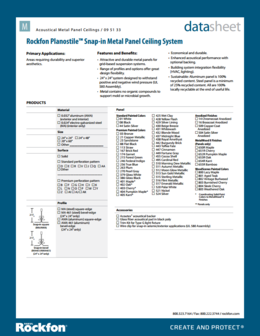 Planostile™ Snap-in concealed metal panels provide durable and monolithic ceilings for interior and exterior applications. Snap-in panels are available in a variety of finish options including painted colors, metals and wood-look finishes. Panels may be perforated in one of many different perforation pattern options for increased acoustical performance and visual variety. Snap-in panels have been used extensively on exterior and interior applications and give designers options for creating visual design continuity from exterior to interior. Planostile Snap-in panels integrate with lighting and air diffusers.
